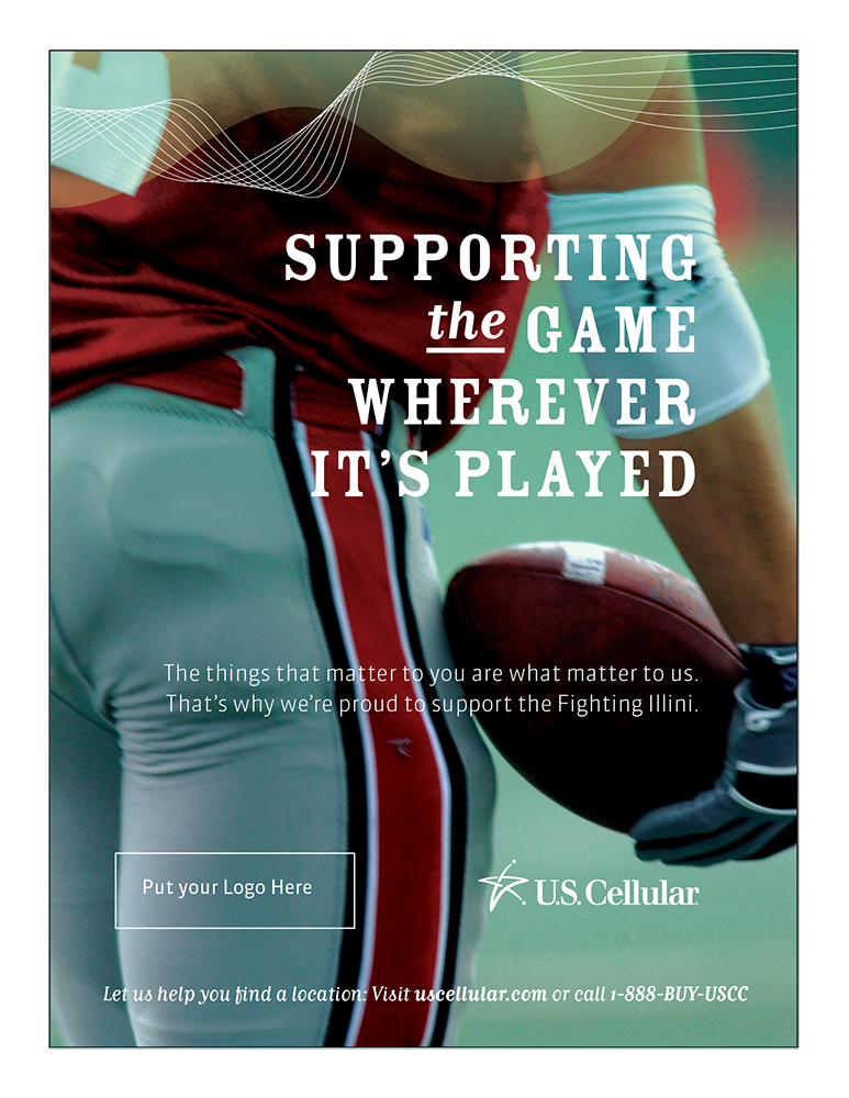 U.S. Cellular sponsors a great deal of events from sports to neighborhood festivals and has full-page ads for them. The new branding required more of a “lifestyle” approach for their brand collateral that looked more natural as opposed to the “stock photography” look of yesteryear. While the cloud and waves was part of the branding I utilized different approaches to the images used from saturated photography to a single grainy, almost posterized figure.